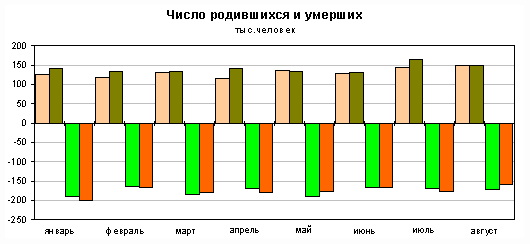 В январе-августе 2008г. в России отмечалось увеличение числа родившихся (во всех субъектах, кроме Нижегородской области и Чукотского автономного округа) и числа умерших (в 45 субъектах).