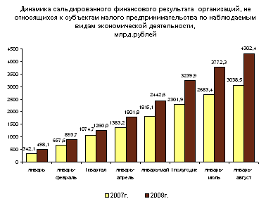 О финансовых результатах деятельности организаций в январе-августе 2008г.